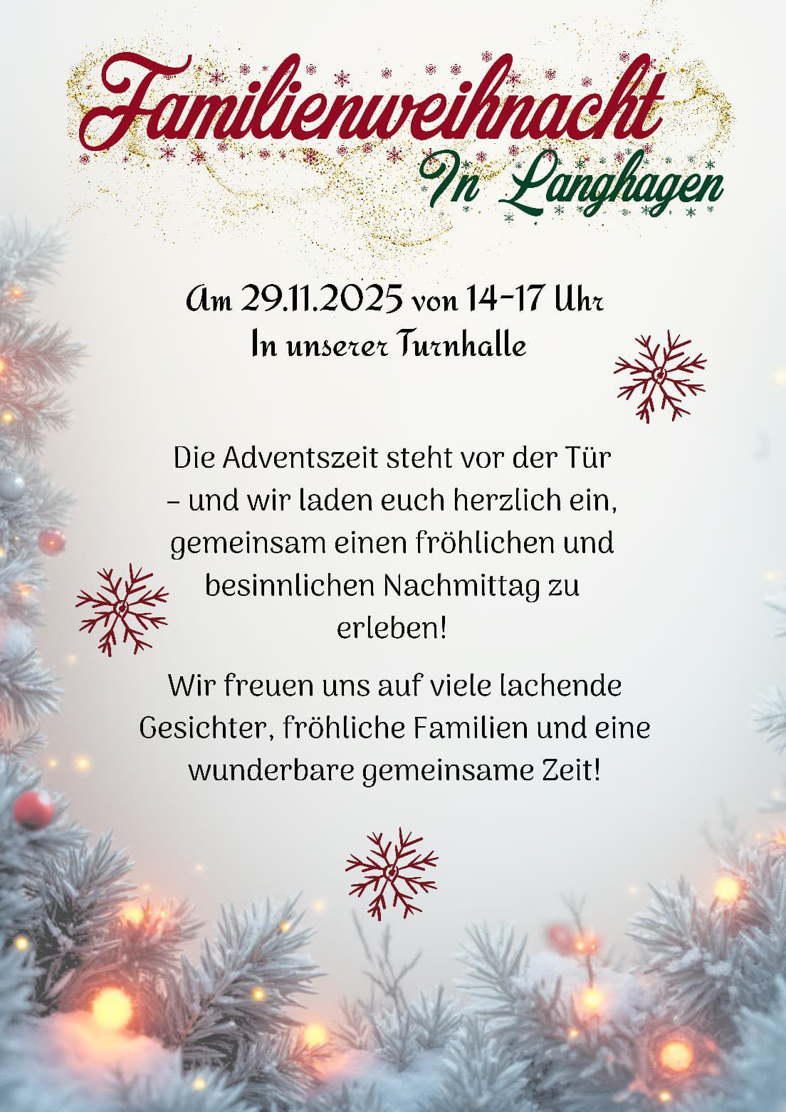 Am 29. November 2025 von 14 bis 17 Uhr laden wir alle Langhägener Familien, unsere Schülerinnen und Schüler sowie ihre Angehörigen herzlich in unsere Turnhalle ein.